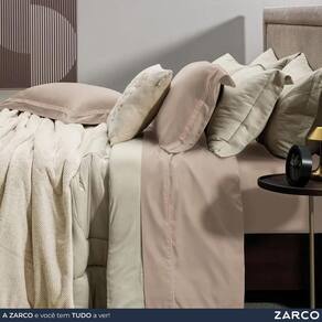 Com toque moderno e elegante, o jogo de cama Lara se destaca pelos detalhes em cordonê e filete contrastante presentes nas fronhas e na vira do sobre lençol. Confeccionado em cetim de algodão 300 fios egípcio, proporciona um toque sedoso e caimento perfeito. Versátil, pode ser coordenado com todos os produtos da Karsten, especialmente da cama Bossa, formando composições que vão do clássico ao contemporâneo. Ideal para quem busca uma cama minimalista, mas com personalidade e acabamento refinado.