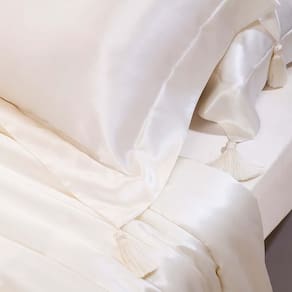 A Seda Mulberry é produzida pelo bicho da seda que se alimenta somente de amoras brancas. Isso torna as fibras da seda longas e vibrantes. Naturalmente perfeita, não provoca atritos, mantém o cabelo sem frisos e não marca a pele. Os extratos da seda são facilmente absorvidos, permitindo que antioxidantes e aminoácidos ajudem na reparação das células, regenerando a pele durante o sono. Dormir em seda Mulberry, além de ser sinônimo de luxo, é um tratamento estético e de beleza.