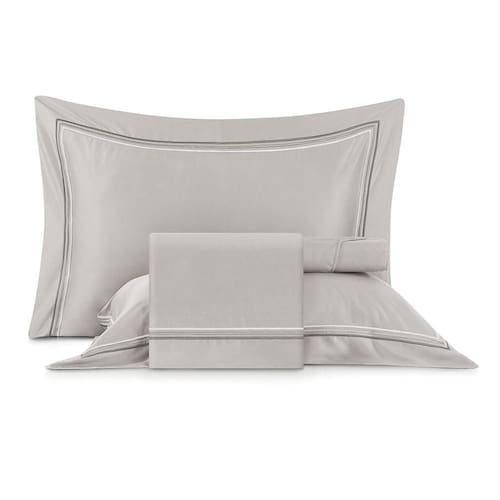 Jogo de Cama Queen Bordados em Cetim 300 Fios Essenza Cinza