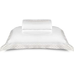 Contém: 01 Sobrelençol Queen 2,40m x 2,60m 01 Lençol com elástico 1,58m x 1,98m x 40cm de altura 02 Fronhas 50cm x 70cm