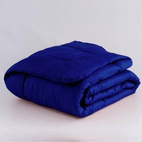 Jogo de Cama Queen com Edredom Lençol Fronha Função Cobre Leito e Cobertor - Azul Marinho