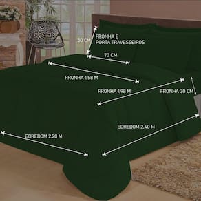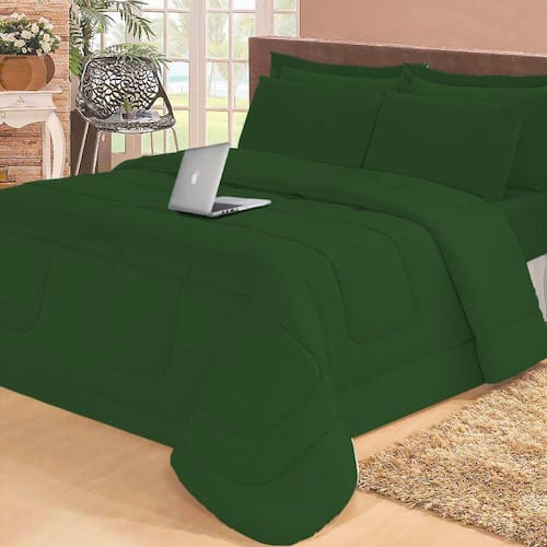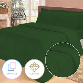 Jogo de Cama Queen com Edredom Lençol Fronha Função Cobre Leito e Cobertor - Verde