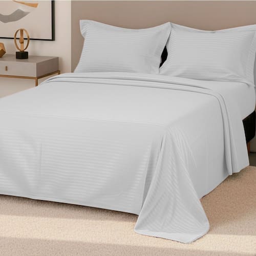 Durma com mais conforto e elegância com o Jogo de Cama Queen 300 Fios BF Colchões. Produzido em 100% algodão percal premium, oferece toque macio, tecido respirável, acabamento refinado e durabilidade em cada detalhe. Por que escolher este Jogo de Cama?