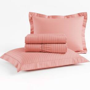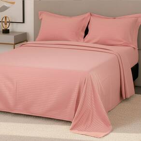 Jogo de Cama Queen Percal 300 Fios 100% Algodão Adamascado 4 Peças – BF Colchões - Rosa