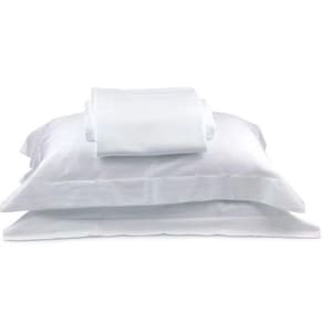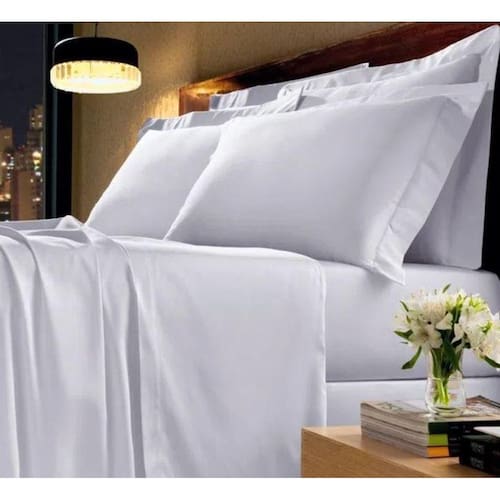 1 Sobre Lençol com vira 2,40m x 2,60m 1 Lençol com Elástico 1,58m x 1,98m x 40cm 2 Fronhas com abas 50cm x 70cm