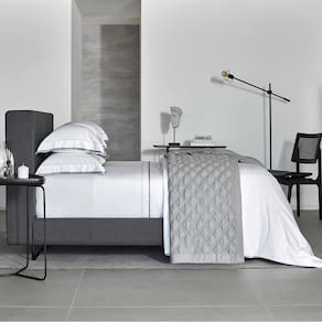 A arquitetura do The Public Theater, em Nova York, serviu de inspiração para esse bordado minimalista, refinado e estruturado. A tecnologia utilizada para produzir o bordado The Public é extremamente precisa o que proporcionou um acabamento perfeito nessa linha de design único e atemporal. Ele é importado assim como as outras linhas de cama da By The Bed e produzido nas mesmas fábricas internacionais que atendem marcas de alta costura.