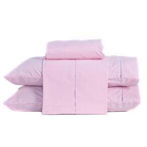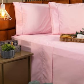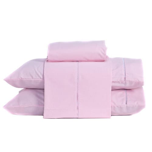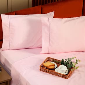 Jogo De Cama Ponto Palito Liso Solteiro 03 Peças - Percal 200 Fios Cor Rosa