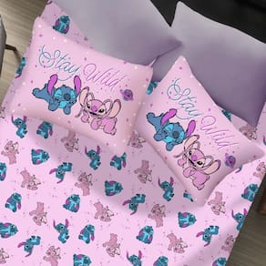 Jogo de Cama Solteiro 2 Pçs Stitch Disney 70% Algodão 30% Poliéster Stitch e Angel Love -