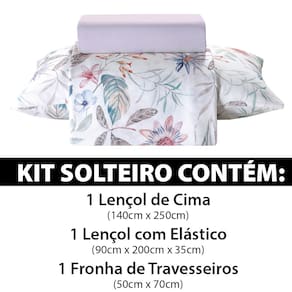 Este kit contém: 1 Lençol de cima (140x250cm) 1 Lençol com Elástico (90x200x35cm) 1 Fronha de Travesseiros (50x70cm)