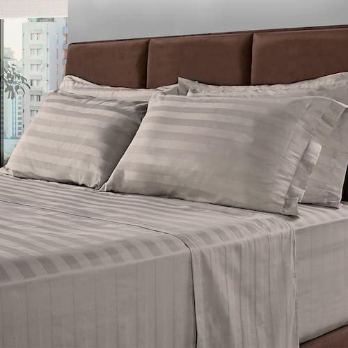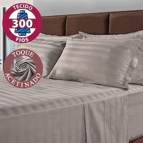 O Jogo de Cama 300 fios é composto por 1 fronha, 1 lençol de cima e 1 lençol de baixo com elástico na cor cinza. Confeccionados em tecido 100% algodão, o Jogo de Cama 300 fios é muito macio, resistente e com toque sedoso. Seu tecido apresenta um suave brilho natural, deixando o ambiente com muita elegância. Não alérgico, proporciona descanso tranquilo e confortável.