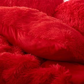 1 capa de travesseiro de 70cm x 50cm sem enchimento - frente pelúcia vermelho e costas em microfibra vermelho toque acetinado.