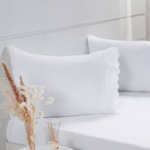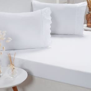 Jogo de Cama Solteiro Broderie 2 Pçs Bordado Inglês 88x188x30cm Branco -
