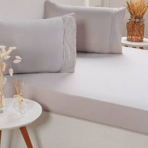 Jogo de Cama Solteiro Broderie 2 Pçs Bordado Inglês 88x188x30cm Gray -