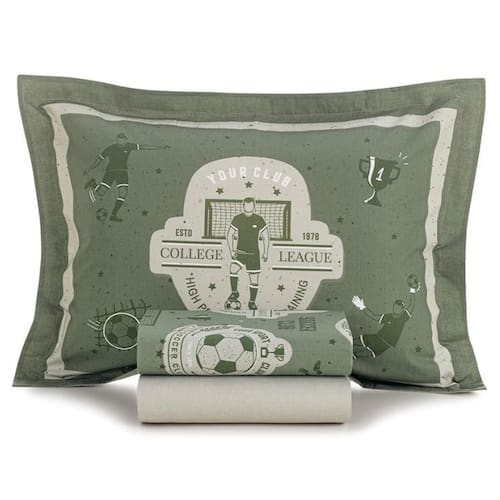 Jogo de Cama Solteiro Infantil Futebol 200 Fios Karsten Jogo de Cama Solteiro Infantil 200 Fios Karsten Inspirado no universo do futebol, este jogo de cama traz energia e diversão para o quarto infantil. O sobre lençol exibe personagens como goleiro, atacante e bola em campo, criando uma cena animada que estimula a imaginação. A fronha é dimensionada e acompanha o tema, enquanto o lençol com elástico apresenta uma estampa suave em tom bege, garantindo equilíbrio visual. É a escolha ideal para crianças apaixonadas pelo esporte, que querem trazer a emoção do campo para o dia a dia. Contém:1 lençol de cima com dobra feita. Tamanho: 1,80m x 2,50m1 lençol de baixo com elástico. Tamanho: 1,00m x 2,00m x 35cm1 fronha com aba. Tamanho: 50cm x 70cm Material: 200 fios, 100% algodãoEstampa: FutebolMarca: Karsten Marca: Não Informado