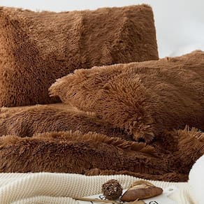 2 capas de travesseiros de 70cm x 50cm sem enchimento - frente pelúcia caramelo e costas em microfibra caramelo toque acetinado.