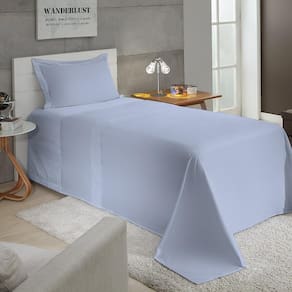 Jogo de cama solteiro liso 300 fios nova américa Cor: azul Jogo de cama solteiro de algodão completo, formado por 3 peças: 1 lençol, medindo 1,60m x 2,47m, com dobra feita para um visual mais elegante. 1 lençol com elástico, com dimensões de 90cm x 1,90m x 30cm, para um ajuste perfeito em seu colchão. 1 fronhas de 50 cm x 70 cm, com abas, proporcionando um toque sofisticado. contagem de fios 300 fios tecido 100% algodão acabamento roupa de cama com lençol inferior com elástico e lençol superior com dobra feita. Detalhes fronha fechamento envelope com abas. Abas de 7 cm. Vantagens ao optar por um tecido 100% algodão você adquire um tecido que oferece uma cobertura impecável e uma sensação incrível de maciez, além de ser altamente durável e respirável. Sinta logo ao deitar o conforto incomparável e sensação de frescor, proporcionando uma noite tranquila de sono. Não comprometa o conforto e a qualidade, escolha uma roupa de cama que fará suas noites de sono serem verdadeiramente relaxantes e revigorantes. Aposte na praticidade deste conjunto, pois é resistente a lavagens frequentes e ao ferro de passar, facilitando seu cuidado e manuseio sem aparecimento de bolinhas. Marca: Não Informado