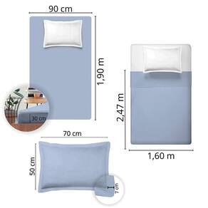 Jogo de cama solteiro de algodão completo, formado por 3 peças: 1 lençol, medindo 1,60m x 2,47m, com dobra feita para um visual mais elegante. 1 lençol com elástico, com dimensões de 90cm x 1,90m x 30cm, para um ajuste perfeito em seu colchão. 1 fronhas de 50 cm x 70 cm, com abas, proporcionando um toque sofisticado. contagem de fios 300 fios tecido 100% algodão acabamento roupa de cama com lençol inferior com elástico e lençol superior com dobra feita. Detalhes fronha fechamento envelope com abas. Abas de 7 cm. Vantagens ao optar por um tecido 100% algodão você adquire um tecido que oferece uma cobertura impecável e uma sensação incrível de maciez, além de ser altamente durável e respirável. Sinta logo ao deitar o conforto incomparável e sensação de frescor, proporcionando uma noite tranquila de sono. Não comprometa o conforto e a qualidade, escolha uma roupa de cama que fará suas noites de sono serem verdadeiramente relaxantes e revigorantes. Aposte na praticidade deste conjunto, pois é resistente a lavagens frequentes e ao ferro de passar, facilitando seu cuidado e manuseio sem aparecimento de bolinhas.