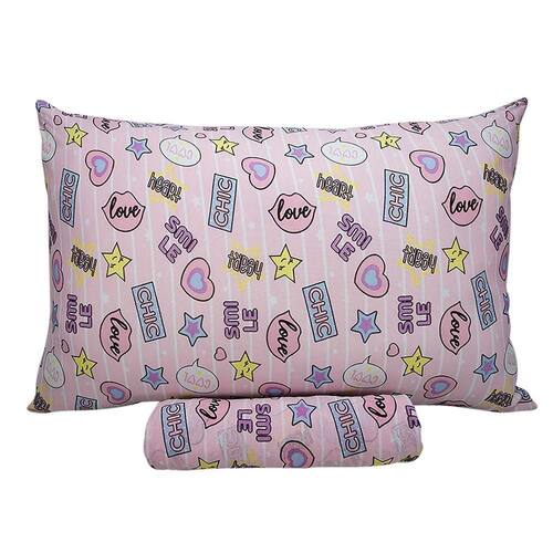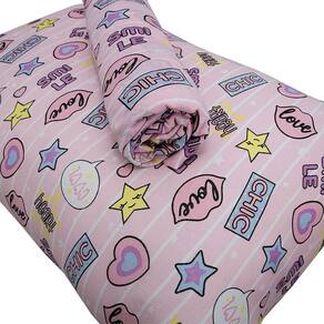 Jogo de Cama Solteiro Portallar Malha Misto Estampado Chic Love 2 Pçs com Elástico Rosa
