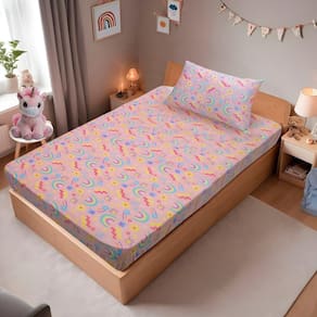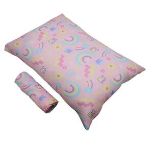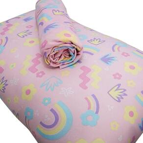 Jogo de Cama Solteiro Portallar Malha Misto Estampado Rainbow 2 Pçs com Elástico Rosa