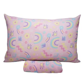Jogo de Cama Solteiro Portallar Malha Misto Estampado Rainbow 2 Pçs com Elástico Rosa