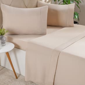 Conjunto completo: inclui lençol de cima, lençol de baixo com elástico e fronha.