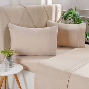 Com as medidas ideais para camas de solteiro, o Jogo de Cama Serenitá oferece o ajuste perfeito, garantindo um encaixe perfeito para colchões de até 30 cm de altura. Sua composição facilita a lavagem, tornando o processo de cuidado do produto mais prático e rápido. O poliéster, por ser um material de secagem rápida, também reduz o tempo de espera após a lavagem, permitindo que você aproveite seu novo jogo de cama com mais agilidade.