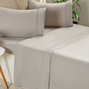 Conjunto completo: inclui lençol de cima, lençol de baixo com elástico e fronha.