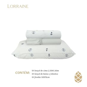 Descrição Jogo De Cama Solteiro 180 Fios Sultan Sonhare Prata NáuticoO Jogo de Cama algodão e poliéster proporciona noites de sono mais tranquilas e confortáveis.Confeccionado em tecido algodão e poliéster com sua composição em 180 fios, traz conforto e sensação de maciez com um toque leve e macio.Fronha com aba o tecido calandrado e com anti-pilling,que impede a formação de bolinhas nas peças, prolongando a durabilidade e garantindo a maciez.Suas cores e estampas atraentes, deixam seu ambiente mais alegre com um toque de modernidade.Beleza e mais tempo de conservação do produto com caimento perfeito.Contém:1 Lençol de cima: 2,20m x 2,50m1 Lençol de elástico: 1,38m x 1,88m x 30cm de altura2 Fronhas: 50cm x 70cmCada peça deste conjunto foi pensada para oferecer a máxima qualidade, conforto e estilo.Ideal para quem aprecia a sofisticação nos detalhes e busca transformar o quarto em um espaço de puro conforto e beleza.Adquira o seu Conjunto de Cama Linha Prata 180 Fios Sonhare Da Sultan e sinta a diferença todas as noites!Instruções de lavagem:Lavar à temperatura máxima de 30°CNão usar alvejante à base de cloroNão usar secadoraPendurar na vertical sem torcerPassar à temperatura máxima de 150°CNão limpar à secoLimpeza a úmido profissional em processo normal* Não incluso Edredom / Colcha e produtos de Decoração da foto.