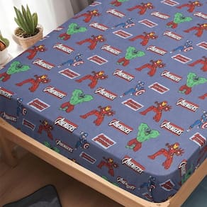 - 1 Lençol Solteiro Vingadores Malha 88x188x30cm1 Fronha Vingadores Malha 48x68cm