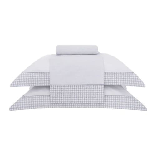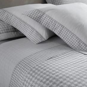 A Coleção Pied Poule traz uma abordagem moderna e sofisticada para o padrão tradicional, são delicadamente enquadrados por esse padrão de alta costura, criando um jogo de cores sutis em tons de cinza que adicionam neutralidade e suavidade ao ambiente. você transformará seu quarto, elevando tanto o estilo quanto o conforto a um novo patamar de sofisticação. É a escolha perfeita para uma noite de sono envolta em elegância.