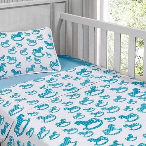 Conteúdo e Medidas: Jogo de Cama Malha Mini Cama(Montessoriana) - Sucesso - 03 Peças 01 - Sobre Lençol Malha Estampado(90cm x 1,70m) 01 - Lençol Malha Mini Cama(Montessoriana) Liso c/ Elástico (70cm x 150cm x 15cm) 01 - Fronha Malha Estampada (34cm x 40cm)