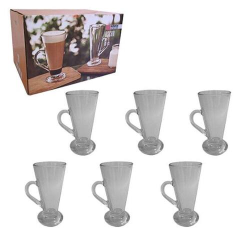 Caneca com 250ml para o delicioso capuccino ou quaquer drink de café gelado ou quente.Capacidade: 250mlTamanho aproximado da caneca: 14,5x7cm de øPeso aproximado: 2390gTipo de produto: jogo de caneca para cafe/cappuccino com 6 pecas na caixaCor: transparenteComposição: vidroQuantidade: 1 unidade