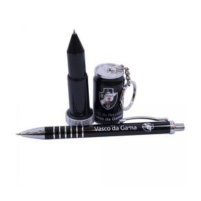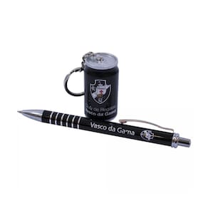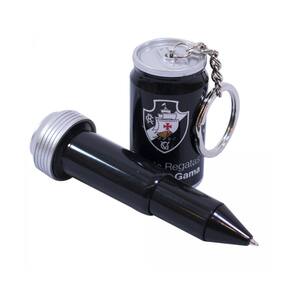 Jogo com um chaveiro com enfeite de plástico no formato de lata, interior possui uma caneta, e uma caneta de metal. Ambos customizados do seu time. Medidas- ALT 12 LAR 09 COM 03 peso 100gr