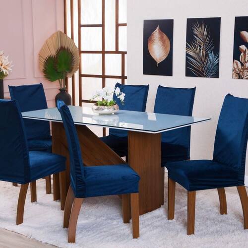 Jogo De Capa P Cadeira 6 Lugares Veludo Macio - Azul Marinho