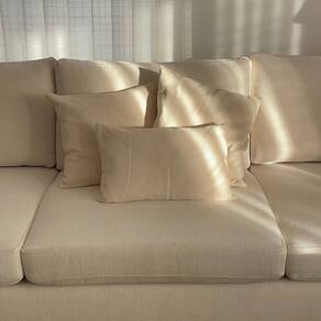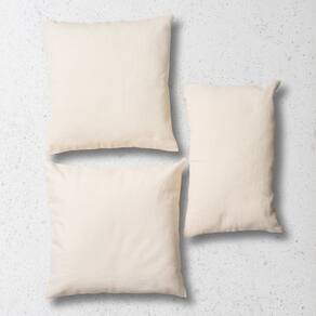 A cor Natural da Coleção Maui valoriza os detalhes com suavidade e leveza. . O jogo é composto por 3 capas , confeccionadas em tecido 100% algodão, com zíper e acabamento impecável, sendo : 2 peças quadradas (44x44 cm) e 1 retangular (34x50 cm). Combinam com sofás, poltronas, camas e mantas, trazendo aconchego e estilo para salas, quartos e varandas. Versáteis e práticas, dão um toque de beleza essencial para decorar com elegância e personalidade.