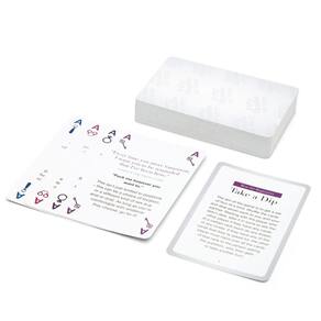 - Os cartões variam de frases e instruções para iniciantes a ações mais ousadas