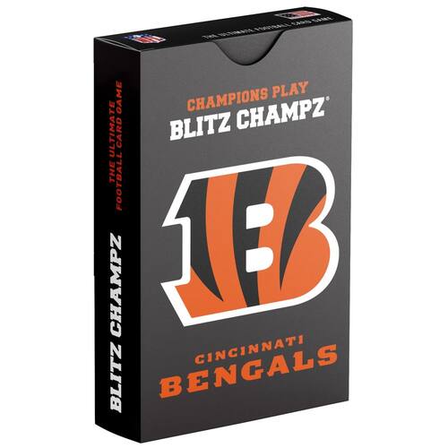 O jogo BLITZ CHAMPZ CINCINNATI BENGALS é um divertido jogo de cartas de futebol para crianças a partir de 7 anos! O Blitz Champz pode ser jogado por 2 a 6 pessoas ao mesmo tempo, tornando-o o jogo perfeito para crianças, amigos e familiares. Adicione mais diversão aos jogos da NFL e da faculdade, tailgating, e festas do Super Bowl com Blitz Champz! - Feito nos EUA. - Jogo de cartas Cincinnati Bengals NFL oficialmente licenciado. - Jogável por 2 a 6 pessoas ao mesmo tempo. Jogo perfeito para crianças, famílias, festas na porta traseira e muito mais! - Inclui instruções de jogo e 100 cartas ilustradas de forma vibrante com jogadores de futebol masculino e feminino e bandeira. - Selecionado como vencedor do National Parenting Product Awards por ser divertido e reforçar habilidades matemáticas para crianças de 3 a 8 anos.
