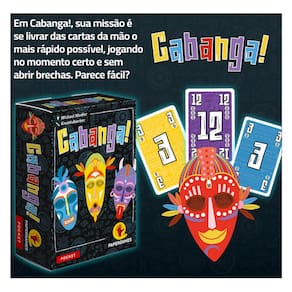 Para vencer, é preciso pensar rápido e saber arriscar! Jogue suas cartas sem dar chances para os outros te atrapalharem, mas fique de olho nas oportunidades de virar o jogo. No momento certo, um único movimento pode mudar tudo! Com partidas dinâmicas e cheias de reviravoltas, Cabanga! é um jogo perfeito para desafiar amigos e família, garantindo risadas, tensão e aquela vontade de jogar de novo!