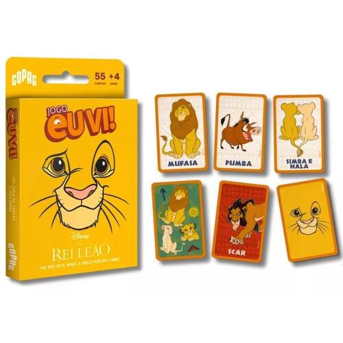 O Rei Leão acaba de chegar à coleção Eu Vi Encontre suas personagens favoritas no universo de figuras da Cartas de Tabuleiro e acumule pontos com velocidade É preciso olhar atentamente - e rapidamente - para ser o primeiro a gritar Eu Vi E conquistar a carta da rodada. Ideal para toda a família, Eu Vi também é uma experiência divertidissima para jogar entre amigos e levar a todo lugar.