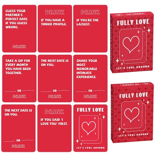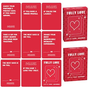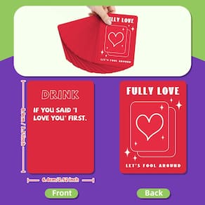 Material: papel Cor: vermelho Tamanho da embalagem: 6,6 × 1,8 × 9 cm Peso da embalagem: 0,08 kg Lista de embalagem: 1 x baralho de cartas para casais (50 cartas) O jogo de cartas romântico para casais — Fully Love é um divertido jogo de cartas de relacionamento desenvolvido para ajudar casais a se conectarem por meio de perguntas divertidas, desafios românticos e dicas divertidas para beber. Perfeito para encontros noturnos — Seja em casa, nas férias ou durante uma noite especial juntos, este jogo de cartas para casais adiciona emoção e risadas aos seus momentos românticos. Fortaleça a conexão emocional — Dicas instigantes e divertidas incentivam conversas significativas, ajudando os parceiros a se entenderem melhor. Fácil e divertido de jogar — Regras simples permitem que os casais comecem instantaneamente. Basta tirar uma carta e completar o desafio ou responder à pergunta para uma experiência divertida. Compacto e fácil de viajar — O design leve facilita o transporte para encontros noturnos, festas ou viagens de fim de semana com seu parceiro.