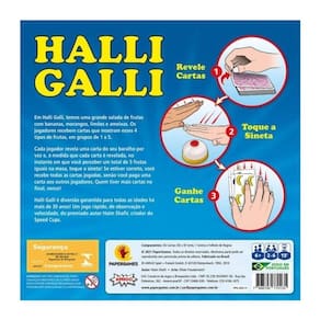 Jogo de Cartas Halli Galli Papergames Em Halli Galli, temos uma grande salada de frutas com bananas, morangos, limões e ameixas. Os jogadores recebem cartas que mostram esses 4 tipos de frutas, em grupos de 1 a 5.