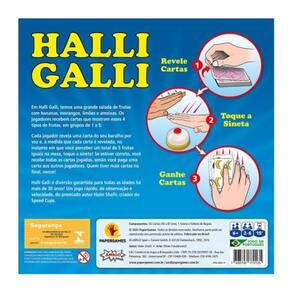 Jogo de Cartas Halli Galli Papergames Em Halli Galli, temos uma grande salada de frutas com bananas, morangos, limões e ameixas. Os jogadores recebem cartas que mostram esses 4 tipos de frutas, em grupos de 1 a 5.