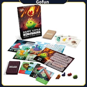 - CONTEÚDO: A caixa contém 97 cartas, 4 tabuleiros de dinossauros, 4 dinossauros