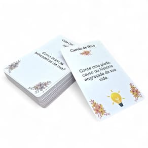 Benefícios: Estimula a memória e a concentração; Incentiva a criação de histórias e a imaginação; Promove a socialização e o bem-estar emocional; Estimula o diálogo e reforça o sentimento de pertencimento; Fácil de levar em todos os lugares; Ideal para pessoas com mais de 50 anos que buscam manter a mente ativa e saudável.