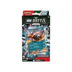 Baralho Batalha - Deck de Batalha Pokemon - Melmetal Ex Pokémon poderosos ex-batalha pela vitória! Use os socos metálicos de Melmetal contra as garras malignas de Houndoom com o novo Pokémon TCG: ex Battle Decks! Melmetal ex e Houndoom ex lideram o ataque nesses baralhos de 60 cartas que incluem tudo que você precisa para jogar imediatamente Que comece a batalha!