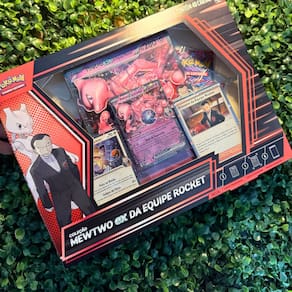 Cartas Pokémon Coleção Mewtwo ex e Giovanni Líde da Equipe Rocket - Copag Prepare-se para mergulhar no lado sombrio do universo Pokémon com a Box Pokémon Mewtwo ex da Equipe Rocket! Esta edição especial traz o lendário Mewtwo ex em versão holográfica promocional, além de cartas exclusivas do Meowth e do infame Giovanni, líder da Equipe Rocket Ideal para fãs da franquia, colecionadores e jogadores que buscam cartas poderosas e diferenciadas A box inclui ainda uma carta extragrande de Mewtwo ex, 6 pacotes de booster para expandir sua coleção com novas estratégias, e um código para o Pokémon TCG Live, para você duelar online com jogadores do mundo todo Perfeita para quem é apaixonado pela Equipe Rocket ou quer adicionar um toque de vilania à sua coleção, essa box é um item indispensável para todas as idades a partir dos 7 anos