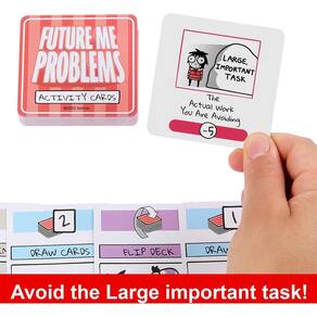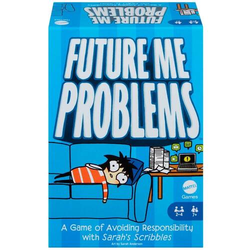 Mattel Games Jogo de cartas Sarah's Scribbles Future Me Problems para evitar responsabilidades - Este jogo de cartas exclusivo apresenta arte personalizada de Sarah Andersen, a premiada escritora e artista da webcomic Sarah's Scriblles. - O baralho e o jogo têm todo o humor, arte e charme pelos quais Sarah's Scribbles é famosa. - Os jogadores planejam seu dia com cartas de agenda, como tempo livre, sorteio, mais trabalho e troca de jogador. - Ganhe pontos colecionando Distractions, como Daydream, Snack Break ou Annoy Cat. - Perca pontos por coletar responsabilidades, como plantas aquáticas, limpar ou levantar na hora. - Mas o que quer que os jogadores façam, eles não querem tirar a carta de tarefa grande e importante. Isso termina o jogo! - Ao jogar as cartas certas, os jogadores podem forçar os outros a comprar as cartas e lidar com as responsabilidades (e tarefas grandes e importantes) que eles não querem! - Future Me Problems é a distração perfeita daquelas tarefas grandes e importantes na vida real com as quais ninguém quer lidar e é uma ótima escolha para a noite de jogos!