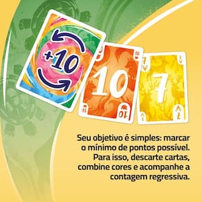 Mojo Em mojo, sorte, estratégia e um toque de magia entram em jogo. Seu objetivo é simples: marcar o mínimo de pontos possível. Para isso, descarte cartas, combine cores e acompanhe a contagem regressiva. Mas fique esperto... a carta mojo pode virar tudo num piscar de olhos - para o bem ou para o mal Cada rodada é dinâmica, repleta de jogadas inesperadas e momentos decisivos. Pegue, descarte, confie na sua intuição e torça para que seu mojo - aquele poder especial que faz tudo dar certo - esteja do seu lado Fácil de aprender e viciante de jogar, mojo é perfeito para qualquer ocasião e ainda conta com uma variante especial para 2 jogadores. E aí, será que você tem mojo pra isso Como jogar sistema 1 - 2 - 3 Está pronto para usar seu mojo 1 descarte cartas ou combine cores para reduzir sua pontuação. 2 três cartas na mão A contagem regressiva começa 3 pegue a carta mojo e confie na sorte... Ou pague o preço Variante para 2 jogadores inclusa Um jogo de cartas estratégico com um toque de magia Mojo traz um desafio que combina sorte e estratégia onde cada carta tem um papel crucial para reduzir sua pontuação e superar seus oponentes. Será que você tem mojo pra isso Partidas envolventes para 2 a 8 jogadores Em mojo, cada rodada é rápida e repleta de surpresas, oferecendo diversão sem espera perfeito para a família e grupos de amigos, garantindo momentos emocionantes e cheios de reviravoltas. Controle o fluxo do jogo com seu mojo Marque o mínimo de pontos descartando cartas e combinando cores. Mas fique esperto: a carta mojo pode mudar tudo num piscar de olhos, para o bem ou para o mal. Essa carta especial adiciona uma camada a cada rodada. Você tem mojo para virar o jogo quando mais importa Mojo é viciante e fácil de aprender Mojo é um jogo super acessível com regras simples, ideal tanto para jogadores casuais quanto para os mais competitivos, que irão adorar o modo avançado adicionando desafios extras Pequeno, barato e divertido Mojo é mais um jogo da linha , pequeno, barato e super divertido Homologação Inmetro: IP-BRI-1432/2021-01