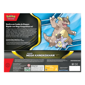Desfira um Combo de Disparo Rápido com Mega Kangaskhan ex!A Megaevolução torna o filhote de Kangaskhan um combatente duro na queda, e ambos juntam suas forças como Mega Kangaskhan ex!Compre cartas adicionais com a Habilidade Faz Teu Corre, depois use Combo de Disparo Rápido e jogue moedas para tentar causar aindamais dano. Batalhe com Mega Kangaskhan ex como uma carta laminada promocional jogável, depois abra oito pacotes debooster para encontrar ainda mais cartas incríveis!A Coleção Mega Kangaskhan ex do Pokémon Estampas Ilustradas contém:• 1 carta laminada promocional de Mega Kangaskhan ex!• 8 pacotes de booster do Pokémon Estampas Ilustradas!