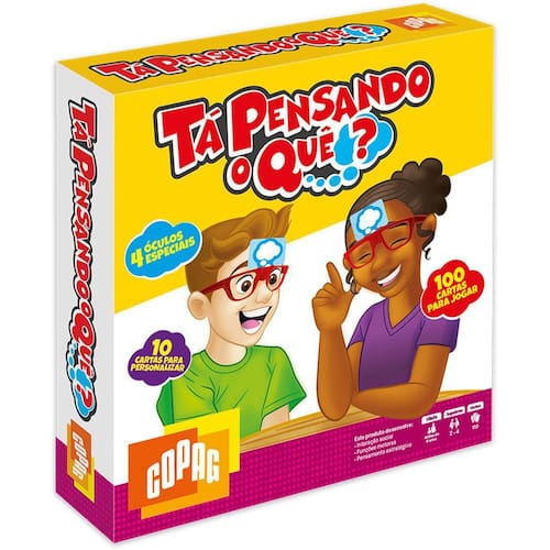 Jogo - Tá Pensando O Quê - Copag Tá Pensando o Quê É um jogo de criatividade e de muita diversão, onde cada jogador deve adivinhar a imagem que está em sua carta. Use a imaginação para fazer as perguntas mais inusitadas aos outros jogadores. A cada rodada seja criativo e faça perguntas certas para que possa avançar no tabuleiro e vencer a partida antes dos outros jogadores. Quanto mais pontos você fizer mais chance terá de vencer Conteúdo: -100 cartas no formato 56mm x 87mm -4 peões de plástico coloridos 2,5 x 1,3 x 1,3 cm -4 óculos de plástico coloridos 15 x 5,5 x 15,5 cm O jogo Tá Pensando o Quê Copag desenvolve interação social, funções motoras e pensamento estratégico. Gênero: Masculino Idade: 5 a 7 Anos ce-bri/sgs n-0078-76 nm 300/2002 Ean: 7896008909390